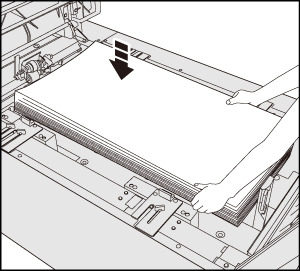 For A4-size paper (plain paper, 80 g/m2 / 21 lb Bond), 2,500 sheets can be loaded, but for banner paper (plain paper, 128 g/m2 / 34 lb Bond), 1,000 sheets can be loaded. If too many sheets are loaded, the paper level indicator remains set to "