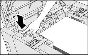 " even if the top door (right) and top door (left) are closed. Reduce the amount of banner paper until the top of the stack is level with the line on the banner paper upper-limit standard label that is indicated on the side guide plate (right).