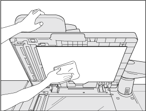 If the ADF guide cover is not clean, soil marks may be copied or the original size may not be properly detected. Wipe the ADF guide cover clean with a clean soft cloth.