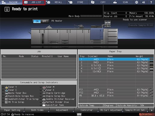 Press the [JOB LIST] tab on the touch panel of the main body.