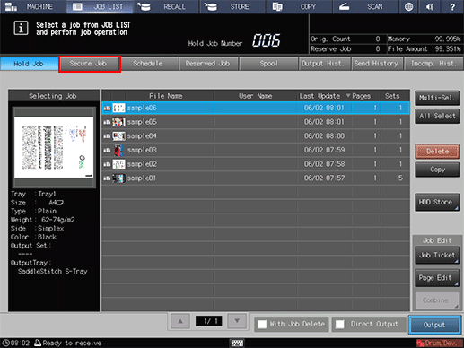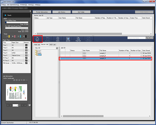 Click the [Secure Job] tab, then select the User Box that contains the target secure job.