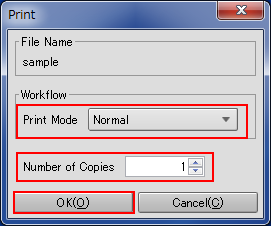 Select [Print Mode], enter [Number of Copies], then click [OK].