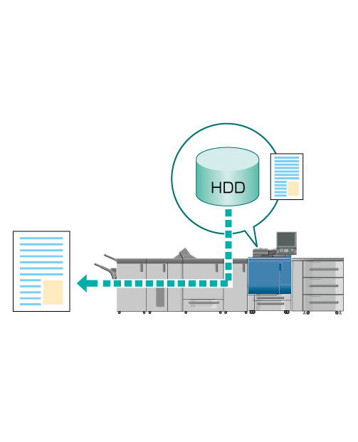 This section describes how to print a job stored on this machine or a job saved on the HDD using the touch panel of the main body or using Job Centro.