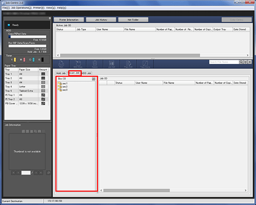In Job Centro, you can only edit print jobs ([Job Type] is [Print]). To edit a copy job or scan job ([Job Type] is [Copy]), use the touch panel of the main body.