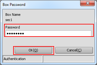 Enter the password of the selected Secure Job User Box, then press [OK].