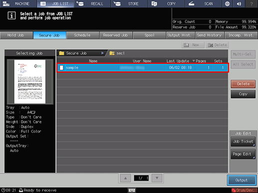 Press [Secure Job].
