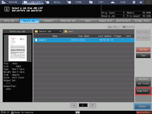 Press [Page Edit] in the [Job Edit] field.