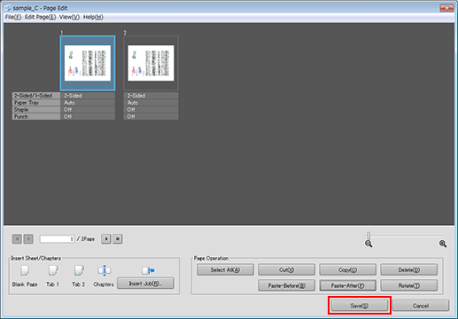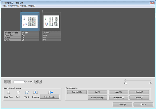 Make edits on the pages (e.g., copy, move, delete / set chapters / insert tab papers).