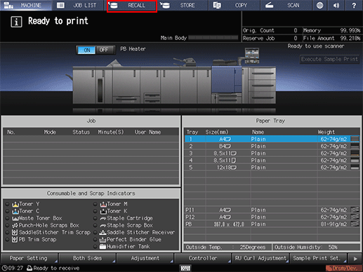 A HDD saved job contains the setting information of the number of sets. You can change it as desired when recalling it.