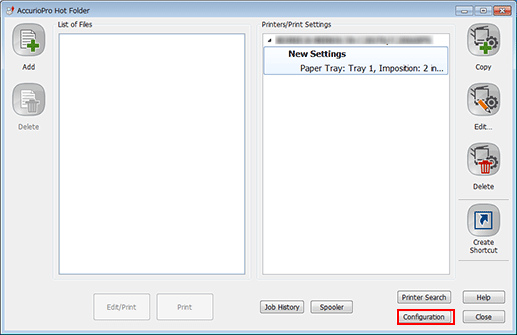 This displays the [Hot Folders] tab on the [Configuration] screen.