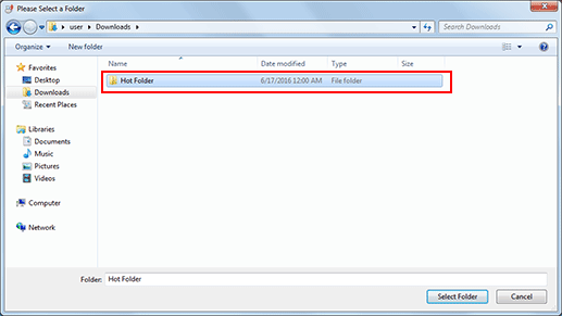 Select the folder to set as a hot folder and click [Select Folder].
