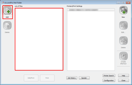 You can add a file to the main screen of AccurioPro Hot Folder to make prints.