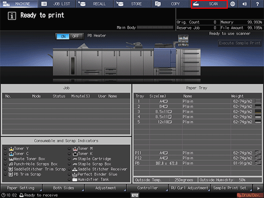 On the touch panel of the main body, press [SCAN].