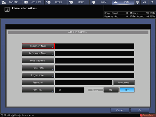 Press [FTP] and press [Register/Edit].