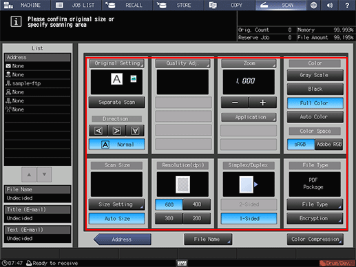 After pressing [SCAN], press [FTP] to display this screen.