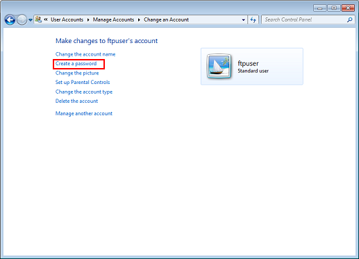 Create a user account to use for accessing the FTP site.