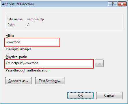 Adding virtual directory allows to manage the directory of the Web server on FTP.