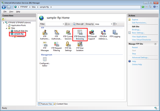 Select the FTP site, and then double-click [FTP Directory Browsing].