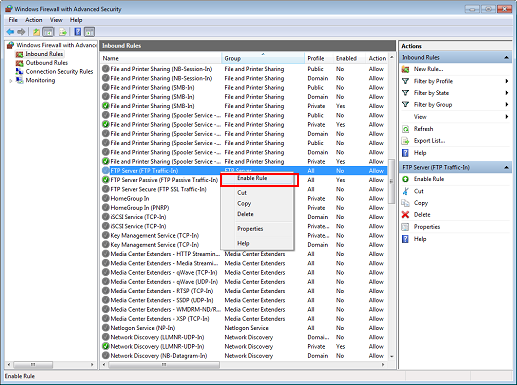 Right-click [FTP Server (FTP Traffic-In)] and click [Enable Rule].
