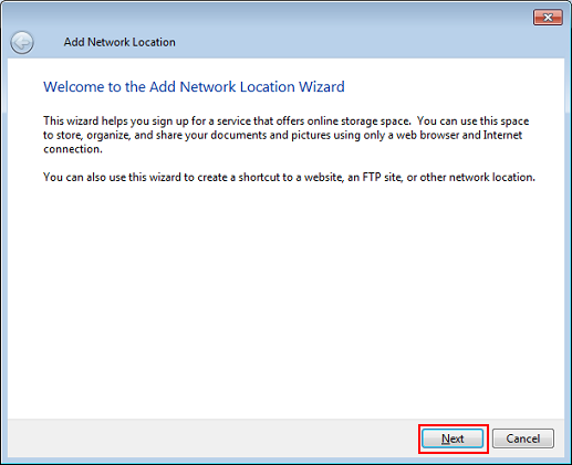 The [Add Network Location] screen is displayed.