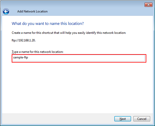 Enter a name for the network location and click [Next].