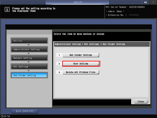 Press [Back] or [Forward] to display [Hot Folder Setting].