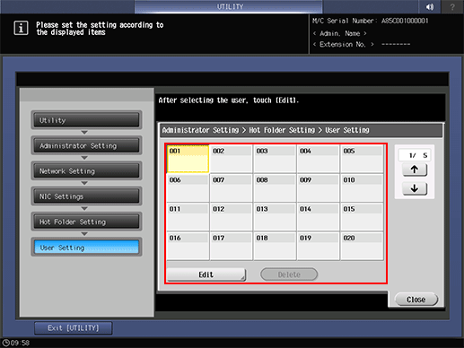 The user setting (user name and password) of the Hot Folder can also be registered by using PageScope Web Connection. For details about PageScope Web Connection, refer to User Setting.