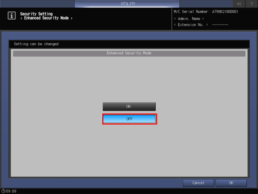 To use the Hot Folder function, set [Enhanced Security Mode] to [OFF]. For details about the [Enhanced Security Mode], refer to Enhanced Security Mode: Setting the Enhanced Security Mode (ON/OFF).