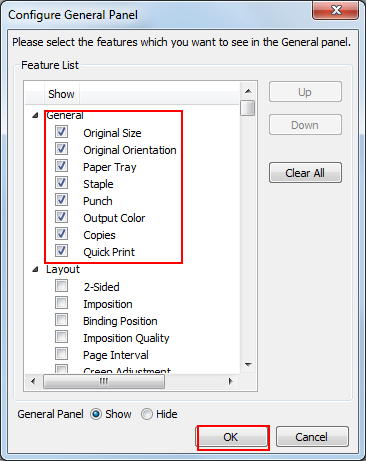 4. On the [Configure General Panel] screen, select setting items you want to display on the [General] screen.