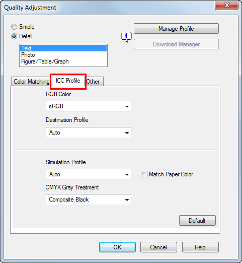Specify the settings for [RGB Color], [Destination Profile], and [Simulation Profile].