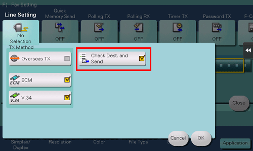 • Before pressing the Start key to begin fax transmission, you can view the specified destination or settings on the Touch Panel to prompt the sender to reconfirm them. If necessary, you can set a password to approve the contents you have confirmed. If an incorrect password is entered, fax transmission will fail. (default: [OFF]) For details, refer to Here.
