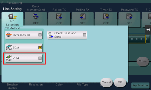 5. Cancel the setting of [V.34], then tap [OK].