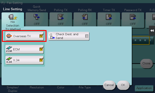 The Overseas TX Mode function reduces the transmission speed (the information transfer speed) for sending a fax.