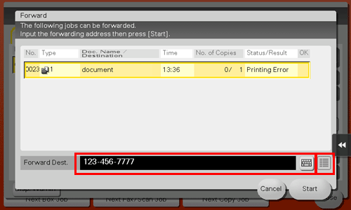 3. Select a job to be forwarded, specify the forwarding destination and then tap [OK].