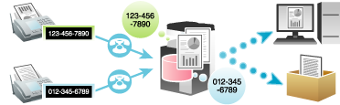 PC-Fax RX is a function that automatically saves a received fax to the Memory RX User Box or a User Box specified in F-Code (SUB Address).