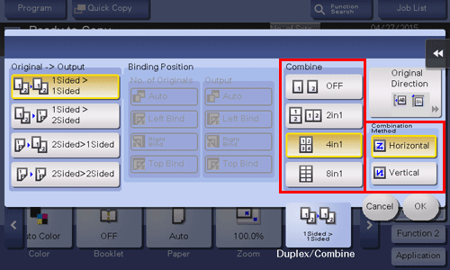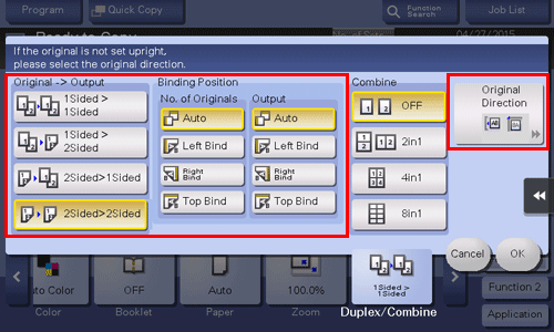 If you have selected other than [1Sided > 1Sided], also specify [Binding Position] and [Original Direction].