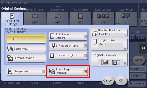Select this check box when scanning an original containing blank pages. Any blank pages that are detected are not counted as original pages.