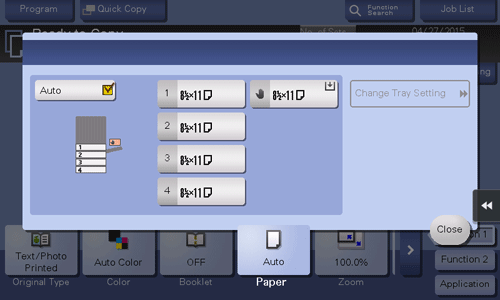 HomeSearch by PurposeSpecifying the size or type of the paper to be copied