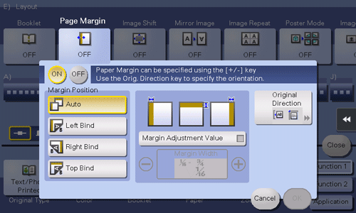 [ON]/[OFF] | Select [ON] to set a page margin. |