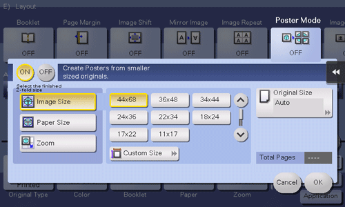 [Total Pages] | When you have selected other than [Auto] in [Original Size], the number of sheets to be output is displayed. |