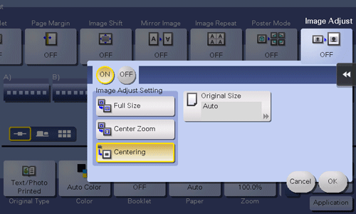 [Minimal] | Place an original image in the center after slightly reducing the size of the original when copying. Select this option when copying the entire original image, including its edges. |