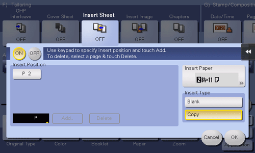 [Insert Type] | Select whether or not to copy on the insertion paper. |