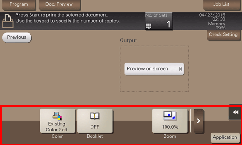 [Application Setting] | Configure more detailed setting such as Stamp or Send & Print. When using this function, click [Display]. |