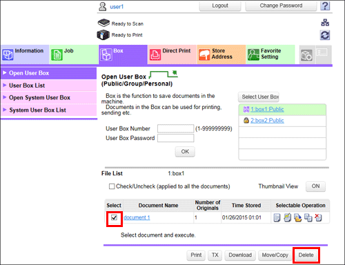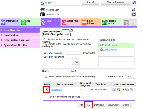 You can also open a desired User Box by entering its number directly in the [User Box Number] column.
