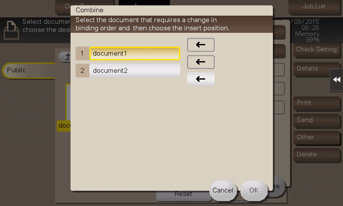 Change the order of printing files (Combine sequence) if necessary, then tap [OK].