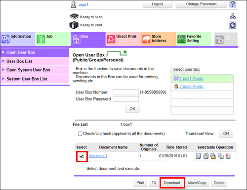 Using Web Connection allows you to download files in the Public User Box to a computer. For details, refer to Here.
