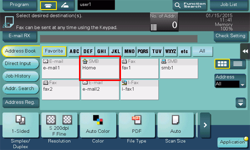 If you log in to this machine while user authentication is installed on this machine and Active Directory is used as an authentication server, the [Home] key appears in the [Address Book] screen.