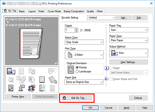 Registering frequently used setting items in [My Tab] enables you to change settings in one tab, without switching among multiple tabs.
