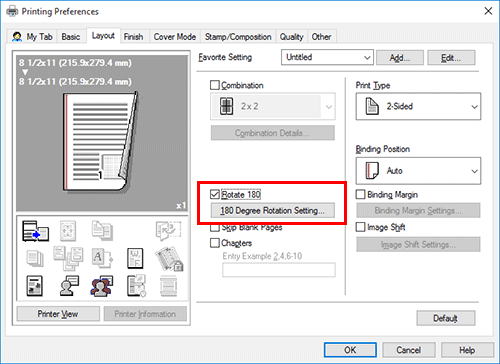 The image is printed upside down. Use this function when printing on envelopes whose loading direction cannot be changed.