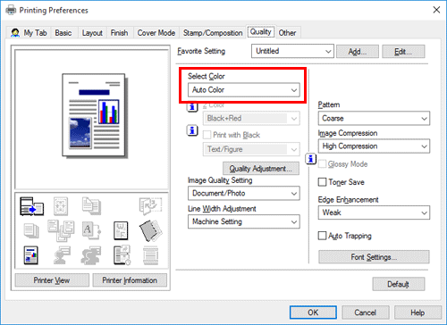 In [Select Color] in the [Quality] tab, select a color mode for printing.